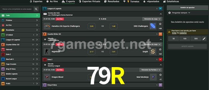 A aposta 79R oferece aos jogadores a experiência mais conveniente de apostas em eSports!